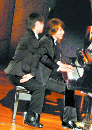 周董彈琴說愛的《不能說的秘密》大紅,言承旭在新戲《星心的淚光》也化身“琴圣”,可惜他琴藝不佳,須由替身“胯下”代彈,兩人十分尷尬,頻頻笑場,變成“男體交纏”的詭異畫面,引起臺下從外地趕來捧場的師奶粉絲兼臨時演員陣陣驚呼,他拍完后也直呼有趣,“我本來就沒鋼琴基礎,為拍演唱會表演已苦練了劇情需要的幾首曲子,但當天拍攝的曲目太難,因此讓替‘手’上場。”