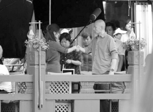 葛優與胡可“握手道別”。