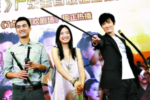 被稱為“偶像版武俠劇“的2008版《射雕英雄傳》(《射雕》)于9日起每晚7時在廣州電視臺綜合頻道播出。昨日,《射雕》的主演胡歌、林依晨、袁弘親蒞廣州,現場大批女粉絲早早就前來支持偶像,并紛紛上臺為3位主演送禮物,結果胡歌收到的禮物還沒有袁弘多,很多人都認為楊康演得非常好。 (記者 陳羽中 實習生 王高財/文 倪黎祥/圖)