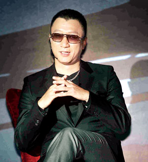 此時,一束白色的圓形燈光打在孫紅雷身上,他周圍的一切仍然在黑暗中。孫紅雷開口回答時也面無表情,語速緩慢。在墨鏡遮擋下,臺下眾人也看不到他的眼睛。此時,已有幾位攝影記者不滿地念叨:“孫紅雷為什么不摘掉墨鏡?”