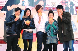 為了幫偶像劇《我的億萬面包》搶攻收視率冠軍寶座,主演鄭元暢(小綜)及林依晨等人日前舉行影迷見面會,玩游戲比賽只能用嘴巴看誰先吃完食物。林依晨不顧金鐘視后的身份,在“粉絲”面前表演大口吞面包,一度還差點噎到。鄭元暢趕緊要林依晨把吃進嘴里一半的面包傳給他,兩人嘴對嘴的親昵畫面,讓全場“粉絲”看得尖叫連連。林依晨在戲中賺錢養男友,現實中,她表示不可能做得到,“應該是要互相照顧吧”。