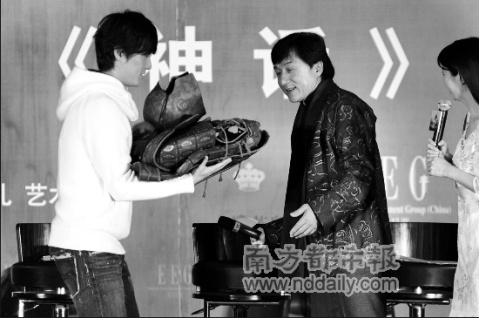 這次被成龍親自欽點扮演男一號,胡歌非常激動。現場他也非常落力地在大哥面前表現,不僅與白冰合唱了一首《神話》, 還當著成龍的面表示,自己演翻版孟將軍壓力很大,但會盡量學習大哥演技“無限度地接近成龍”,說得成龍開心不已,親自將當年拍攝電影穿的一套價值百萬的盔甲送給胡歌。當年由金喜善扮演的女一號卻通過網絡海選最終決出。在描述自己心中理想的女主角時,唐季禮連連用了“蘭心慧質,閉月羞花……”等幾近完美的詞來形容,倒是有記者直接問到他有無打算請緋聞女友林心如來演時,他則不得不尷尬地回應“也可以吧”隨后趕緊轉移話題。