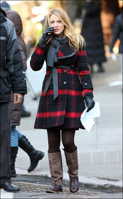 昨日(2月2日)記者拍到了《緋聞女孩》最新片場照,雖然美國現在可以說是天寒地凍,但是我們的時尚達人布萊克·萊弗利卻穿著妮子紅格大衣,黑色牛仔褲長筒靴,為我們演繹最新的歐美時尚,小編帶大家一睹最新的風向標吧。