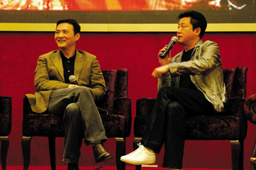 汪俊笑話趙寶剛為臺詞忙得焦頭爛額,可他自己卻有另一番解釋,“老舍的戲,就是語言的戲,我不是在背臺詞,是在找最好的語言表達方式。”他表示,自己拍這部戲,也是考慮將來老了,導不動了,無聊的時候能有人找他串串戲。他扮演的冠曉荷屬于表面慈祥、內心陰險的人,記者問他這是否是本色演出,趙寶剛有些尷尬地笑笑說:“我和孫紅雷一樣,是陰氣很重的人,所以演反派比較容易出彩!