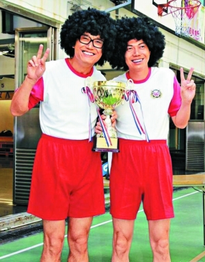 51歲的苗僑偉和41歲的謝天華前日在一間小學續拍無線新劇《老公萬歲》,二人為了搞笑戲分,不惜自毀形象,穿著運動校服配爆炸頭出鏡,謝天華更提議與苗僑偉將褲頭拉高束腰,“越薯(粵語指傻里傻氣)越好”。兩人在《學警狙擊》中的“Laughing哥”和“孝哥”角色都以型男著稱,這次自拆招牌,兩人不但不擔心形象受損,謝天華還搞笑地表示,“我還擔心粉絲更多了呢!”苗僑偉透露戲中尚有多個搞笑造型,比這個爆炸頭更出彩,希望能帶給觀眾驚喜。