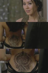 為了這個短暫的攝影畫面,孫藝珍可是一動也不動地連續3個小時趴著。據報道,光是準備文身底部就花去了4個小時,然后為了完美地展現千手觀音像,整整用了3個小時做細致的工作。