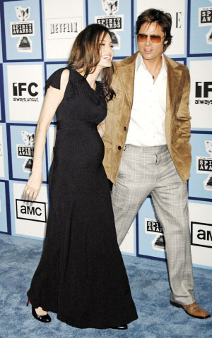 旨在獎勵拍攝成本低于2000萬美元電影的美國電影獨立獎昨日頒獎,早前被證實有孕在身的安吉麗娜·茱莉與親密愛人皮拉德·皮特盛裝出席,茱莉身穿一身束身黑色禮服,凸起的小腹顯露無遺,兩人的幸福溢于言表。據美國《人物》雜志報道,有消息人士透露兩人對于未來新成員的加入感到十分興奮。