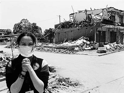 蔣勤勤為災區(qū)祈禱。