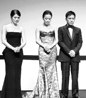 在放映前,三位主要演員楊采妮、劉嘉玲、梁朝偉為震災遇難者默哀。