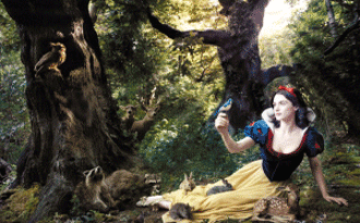 影星斯嘉麗·約翰遜成為灰姑娘,臺(tái)階上還有她遺落的水晶鞋。英俊的貝克漢姆成為睡美人身旁的菲利普王子。黑人女歌星碧昂斯化身《愛麗絲漫游仙境》的女主角。