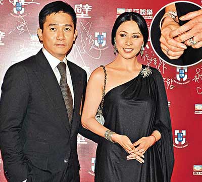 《赤壁》昨晚在中環舉行慈善首映禮,嘉玲為支持未婚夫專程撐場,她與梁朝偉晚上9時多坐勞斯萊斯到會場,身穿斜膊衫的準新娘一身珠光寶氣,記者上前恭賀嘉玲時,她即報以微笑,講了聲多謝后即偕梁朝偉走紅地毯進場。