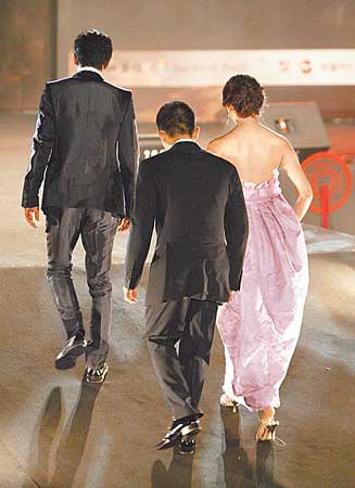 偉仔致詞時還是不忘拉近與大家的距離,他說:“好久沒來臺灣非常興奮,看到今天的天氣就想起去年這個時候,《赤壁》劇組在大陸頂著40度高溫穿厚重的衣服拍打戲,真的好熱。 彼⑴c其它兩位男主角有默契地穿黑西裝酷帥有型。