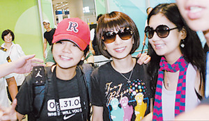 幾位明星都獲贈了“禮物”——為奧運加油的塑像。今天剛好過生日的潘瑋柏收到的是一尊踩滑板的塑像,充滿陽光活力,他開心地說:“我要把這個生日禮物帶回家!”談到馬上就要開幕的奧運會,潘瑋柏大聲撒嬌:“好想有人給我25張門票,我要到現(xiàn)場看比賽!”青春可人的S.H.E三個小妮子被塑造成拉拉隊的形象,三個人見到了嘰嘰喳喳地評論:“最貼心就是給我們都裝上假睫毛!”三個人在現(xiàn)場分享了她們最愛的運動,ELLA最近因為迷上沖浪而被曬成了小麥膚色,而HEBE則因為拍電視劇而愛上籃球,兩人都在現(xiàn)場像模像樣地表演起自己喜愛運動的動作。輪到SELINA,她笑著說:“我從小就最愛游泳,自由式和蛙式都不錯,現(xiàn)場就不展示了!”壓軸上場的周杰倫贏得了最高的歡呼聲,主演過《大灌籃》的他得到特別優(yōu)待,巨型的扣籃動作塑像從場館的外墻“破墻而出”,格外震撼。現(xiàn)場的志愿者也一起大喊:“周董加油!”
