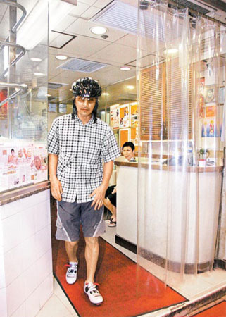 周星馳前晚一身單車騎士打扮離開餐廳。