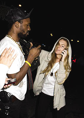 上周日晚,Bowery酒店門前,身穿連帽衫的琳賽·洛韓企圖跨過一個(gè)障礙,就在這時(shí),意想不到的事情發(fā)生了——正在打電話的她誤以為一名記者企圖將她絆倒,于是她揮拳打向了那名記者!打完之后,她對著電話那頭的人說:“噢,我的上帝,我打了一名狗仔記者。”