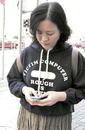 面容憔悴的藍(lán)潔瑛不斷把玩手機(jī)。圖片均來自香港《明報》