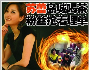 交談中,兩名中學生模樣的女孩并肩走了過來,一張口就是“蘇蕾姐姐”!奥犝f蘇蕾姐姐要到這里來,我們倆在這里觀望了很長時間了,這次鼓足勇氣過來,希望蘇蕾姐姐能幫我們簽個名!”豪爽的“蘇蕾姐姐”二話沒說,大筆一揮,簽上了自己的名字,并免費贈送合影一次。就在記者切入正題的時候,一名女服務員笑瞇瞇地走上前來:“不是點單,是請你簽名的!”
