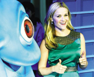 《怪獸大戰外星人》是夢工廠耗時兩年制作的全3D效果動畫大片。在柏林首映式上,為影片配音的瑞茜·威瑟斯彭和美國男星基弗·薩瑟蘭結伴捧場。一身綠色瓦倫蒂諾連衣裙的威瑟斯彭還和動畫主角——果凍狀怪物B.O.B親密合影。