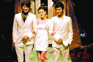 昨天下午,偶像劇集《泡沫之夏》的開機發布會在臺北某婚紗品牌旗艦店中舉行。發布會現場儼然是場浪漫白色時裝秀,明星們紛紛著純白夢幻感十足的禮服走過長長T臺。其中,大S挽著黃曉明、何潤東兩大帥哥,竟乘坐纜車空降,令現場充盈浪漫氣氛。