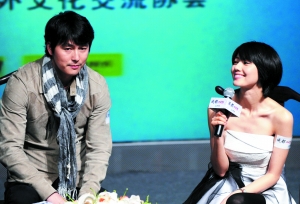 剛在亞洲電影大獎中奪得“最佳男配角”的韓星鄭宇成,日前偕高圓圓、“超女”譚維維等人在北京出席電影《成都,我愛你》記者會。