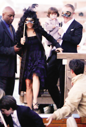 長(zhǎng)達(dá)兩天的婚禮處處經(jīng)過精心布置。上周五,主人家按照傳統(tǒng),在威尼斯古跡海關(guān)大樓舉行了一場(chǎng)晚宴彩排以及假面舞會(huì)。海耶克、皮諾特帶著他們19個(gè)月大的女兒瓦倫蒂娜以及皮諾特與前妻的兒子,乘坐“水上巴士”抵達(dá)會(huì)場(chǎng)。無(wú)論是婚禮主角海耶克和皮諾特,還是塞隆等來賓均手持面具遮臉。