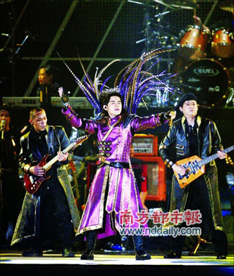 周杰倫服裝風格多變,13套服裝的換衣過程有些不順,周董說:“實在太多東西要換。”