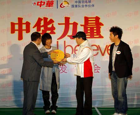 中新網3月21日電 中國國家羽球總教練李永波和內地著名歌唱組合羽•泉,聯手演唱的《中華力量 I believe》在京首次公布,這是聯合利華旗下中華牙膏品牌為中國國家羽毛球對征戰二零零八奧運會而打造的歌曲。現場,國家羽毛球隊出征08倒計時牌也同時啟動。