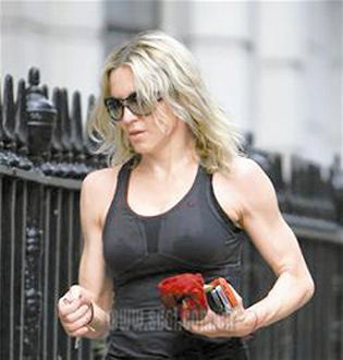 4月14日,倫敦,麥當娜結束體操訓練后返家。穿黑色緊身背心的她肌肉壯碩,看上去十分魁梧,這位流行天后的女人味似乎已經越來越少了。