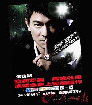 他成就了一種精神——永不言敗,他鑄就了一個榜樣——奮斗不息,他就是華人演藝圈的“勞模”——劉德華。在2009本命年,劉德華將把 “Wonderful World(奇幻世界)”巡回演唱會帶到中國內(nèi)地,馬不停蹄地與各地樂迷分享他出道以來最豪華的演唱會。而值得廣東樂迷開心的是,劉天王將于3月20日和4月1日分別登陸廣州奧林匹克中心和佛山世紀(jì)蓮體育場,兩場演唱會都可容納3萬多樂迷。