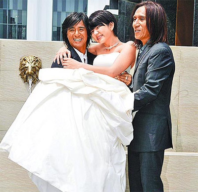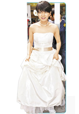 中新網3月20日電 Ella昨穿婚紗為師兄動力火車新歌《愛到瘋癲》拍MV,27歲的她毫不客氣緊貼尤秋興,稱被他的“電眼”電暈,還相約若她37歲沒嫁出去,他就娶她,最后他更一把將她抱起,已婚的顏志琳完全被晾在一旁。
