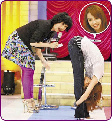 中新網4月10日電 蔡依林(Jolin)昨在《大學生了沒》表演軟骨功,直接把臉貼到小腿上,把陶晶瑩(陶子)嚇壞,Jolin說自己練舞常練到崩潰,會跟舞蹈老師張勝豐翻臉:“我不練了,可以走了嗎?”