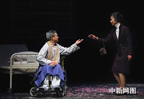 最后一幕的“壓軸場(chǎng)”是分別四十多年的云之凡和江濱柳在病房相見(jiàn),黃磊和孫莉默契細(xì)膩的表演令全場(chǎng)觀眾為之動(dòng)容,他們將看似平淡的兩位老年人之間的對(duì)話演繹得波瀾起伏,觀眾完全可以感受到云之凡在平靜外表下內(nèi)心的情緒起伏變化以及幾十年來(lái)的情感積累和煎熬。當(dāng)孫莉與黃磊在臨別前最后一次握手時(shí),劇場(chǎng)里的啜泣聲幾乎比平時(shí)大了一倍多,觀眾真正體會(huì)到當(dāng)年《紐約僑報(bào)》評(píng)價(jià)該劇“最后一幕時(shí)劇場(chǎng)的墻壁幾乎要溶化掉”的感覺(jué)。