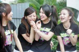 5月5日,黑澀會美眉與黑人來到廣州體院拍攝外景,參觀大學里四個各具特色的社團——雙截棍、舞獅、武術及戲曲團。俗話說,三個女人一臺戲,這8妞妞湊在一起,雖然馬不停蹄地趕通告,同樣不影響她們旺盛的精力及古靈精怪的個性,全程不斷大笑、嘰嘰喳喳,閑聊一刻不停歇,有時還需要工作人員提醒才乖乖地收口,談論的話題更是包羅萬象,從蚊子咬的包到路人很瘦的腿,都能引起她們強烈驚嘆。