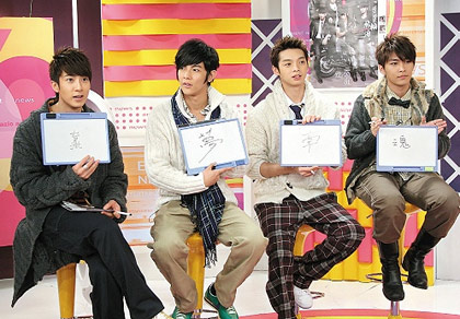 中新網1月13日電 據臺灣“聯合報”報道,偶像團體飛輪海日前接受“東風娛樂通”訪問,在節目上大玩語文測驗,經過10題考驗后,汪東城以6題成績為飛輪海里的語文常識大王,炎亞綸則是5題成為第二名,來自文萊的吳尊,由于平常說話的腔調,只對三題,被說語文造詣不好的他,硬拖只答對三題辰亦儒下水,自稱與師大附中畢業的辰亦儒同等級,辰亦儒只好當眾向高中語文老師道歉。