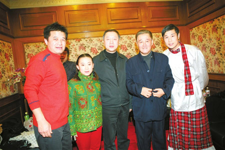 趙本山為了春晚的演出,日夜操勞,頂住了巨大的壓力。他嘆了一口氣說,“二十多天前,春晚導演組一開始就把《送蛋糕》槍斃了,當時,我晚上急得睡不著覺啊!這個時候去哪兒弄作品?突然一天晚上,我看見畢福劍主持的《星光大道》,一下子有了靈感,就叫畢福劍來演小品。結(jié)果,我一打電話給老畢,老畢就同意了。現(xiàn)在,排練幾天,效果不錯,但人確實很累。”趙本山傷感地說:“其實這是老毛病,去年就犯過,但為了觀眾,我必須堅持下去。我今年都50多歲了,頭發(fā)快白完了,總不能老守著春晚這舞臺,也得有接班人啊。我希望新人盡快成長!”