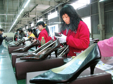 昨天下午,記者來(lái)到位于武侯區(qū)簇橋簇馬工業(yè)園成都依百蘭鞋業(yè)。工廠內(nèi)四條生產(chǎn)線正加足馬力生產(chǎn)Bandolino的訂單,其中一條流水線上生產(chǎn)的,正是奧巴馬夫人穿的那款鞋。
