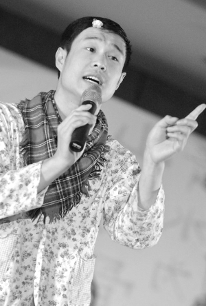 作為整場(chǎng)演出的“腕兒”,小沈陽(yáng)壓軸登場(chǎng),穿著今年央視春晚上的蘇格蘭裙、背著女包亮相。他與妻子沈春陽(yáng)在臺(tái)上互相打趣。說(shuō)到夫妻倆回娘家被老丈人分床睡,兩人只能打呼嚕假裝說(shuō)夢(mèng)話傳情的段子,令觀眾直呼笑得肚疼。演出到最高潮,小沈陽(yáng)扯了段卷筒紙巾當(dāng)圍巾,還說(shuō)這圍巾是“正宗真絲”的,因?yàn)椤罢婺芩骸薄kS后他“求”觀眾和演員跟他“串通”,“我一出場(chǎng)你們就拼命喊愛(ài)我”,好讓他享受一下當(dāng)大腕的滋味。然后站在三輪車上出場(chǎng),高唱“成名作”《情人》,竄下舞臺(tái)跟女觀眾擁抱,引得大家全都站起來(lái)鼓掌。