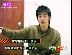 節(jié)目的字幕顯示,肇事者名叫“張漢”,這正是張翰在中戲就讀時使用的名字。而張翰在審訊室接受審問時也承認了自己的過錯并描述事發(fā)經(jīng)過:“我只想讓他下去,我踩了三次剎車,我說‘你別拽我!’,我也怕他出事。”他強調(diào),因為自己的情緒不佳才釀出事故:“因為當時我情緒比較激動,有許多下意識的行為,當時沒有想那么多,但是我剛把車子開出來(指把警察的手甩出窗外之后),就意識到事情鬧大了。”