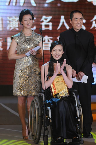 雖然執導國慶60周年焰火晚會重任在肩,但是昨天張藝謀依然來到盛典現場,領取了“中國最杰出成就榮譽”和“中國公眾滿意度最佳演藝名人”榮譽,并擔任頒獎嘉賓。更為難得的是,獲得“中國年度舞蹈最佳表現女演員”提名的舞蹈演員劉巖也坐著輪椅出現在現場。這是手術之后的劉巖首次公開亮相公眾場合。劉巖原本是北京奧運會獨舞《絲路》的A角,但是由于車臺操作失誤,造成劉巖從近3米高空踩空、墜落,導致她嚴重受傷,并為此付出了無可挽回的代價……