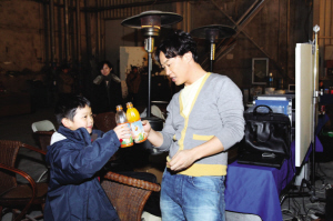 現場有一位“乘機潛入”的小歌迷,慕名來看偶像的演出。陳奕迅是娛樂圈中公認的好父親,在家里對5歲的女兒寵愛有加,在外與別的小孩也能打成一片。在廣告拍攝過程中,陳奕迅突然走到這個小歌迷身邊,拿起手中的飲料和小歌迷碰杯,并與他一起合影,一大一小倆“頑童”的溫馨場面令在場人動容不已。○魯文靜
