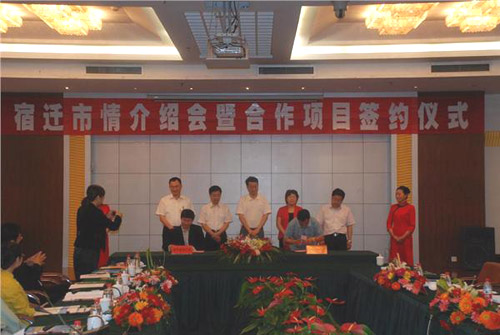 7月1日下午,“海外華僑華人高層次人才宿遷行”活動(dòng)舉行了市情介紹暨項(xiàng)目簽約會(huì)。、江蘇省僑辦副主任孫彬首先作了簡(jiǎn)要發(fā)言,并對(duì)此次活動(dòng)的舉辦表示祝賀。宿遷市市委書記張新實(shí)進(jìn)行了熱情洋溢的致辭。他首先向到訪的各位企業(yè)家、專家和學(xué)者表示歡迎,并向與會(huì)嘉賓詳細(xì)介紹了宿遷市的基本情況、經(jīng)濟(jì)和社會(huì)發(fā)展情況。他語重心長地指出,一個(gè)地方的經(jīng)濟(jì)發(fā)展可以取得一時(shí)之快,但人才積累遠(yuǎn)非一日之功。宿遷的跨越發(fā)展需要大批高層次人才,他希望有越來越多的高層次人才來宿遷考察、落戶。宿遷市委組織部部長白云萍詳細(xì)介紹了該市在引進(jìn)高層次人才方面的優(yōu)惠政策與措施。她強(qiáng)調(diào)指出,宿遷正處于快速發(fā)展的關(guān)鍵時(shí)期,面臨難得的歷史性機(jī)遇,迫切需要人才智力資源的支撐,尤其是高層次的人才,宿遷會(huì)以更好的條件、更優(yōu)的服務(wù)吸引更多的高層次人才來宿投資創(chuàng)業(yè)。