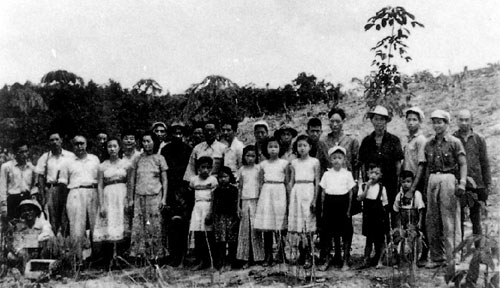 這張攝于1956年的照片,地點位于南田農場愛國作業區的橡膠林前。