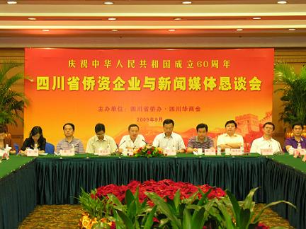 中新網9月10日電 “慶祝中華人民共和國成立60周年四川省僑資企業與新聞媒體懇談會”于9月3日在成都舉行,此活動由四川省僑辦、四川華商會主辦,四川省部分僑資企業負責人與省市新聞媒體負責人和記者歡聚一堂,暢談偉大祖國成立60周年來的豐功偉績和僑資企業為四川省經濟社會發展做出的貢獻,共抒加強僑資企業與新聞媒體交流合作的友誼,探討新聞媒體走進僑資企業,共謀為四川省“加快建設災后美好新家園,加快建設西部經濟發展高地”作貢獻。