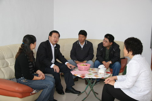 在柬埔寨外派教師慶云一中慈文鵬、李振華家中,呂善勇和教師家屬親切交談,他說柬埔寨條件很艱苦,老師在外面克服了很多困難,取得了優(yōu)異的成績(jī),這次兩位老師又被海外華校延聘一年,充分說明他們的工作得到了各方肯定。老師們辛苦了,通過你們向老師表示慰問和感謝,同時(shí)也感謝家庭對(duì)老師的大力支持,對(duì)山東省華文教育事業(yè)的支持。教師家屬對(duì)省市僑辦的關(guān)心表示感謝,表示一定在家當(dāng)好后盾,讓老師在海外安心教學(xué),把工作做得更好。