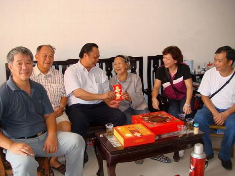 李惠芬老歸僑是容縣容西鄉四傳村水枧隊人,1950年從馬來西亞回國,現跟隨兩個歸僑兒子住在容州鎮。當玉林市僑聯主席鐘雄一行來到李惠芬住地時,令她的家人感到非常驚喜。百歲的老歸僑李惠芬每天堅持鍛煉,身體還算硬朗,聽力也比較好,面色紅潤,非常健談,與玉林市僑聯主席鐘雄拉起家常和講述她在馬來西亞的情況時,侃侃而談,思路清晰,記性相當好。當接過僑聯送給她的生日禮品和祝壽金時,李惠芬老人拉住鐘雄的手連連說:謝謝!謝謝!其家人也對僑聯組織對老歸僑的關懷再三表示謝意。 (容縣僑聯)