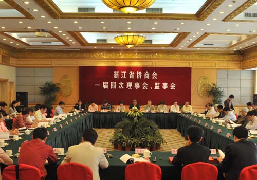 中新網10月26日電 浙江省僑商會第一屆理事會、監事會第四次會議于2009年10月20日在杭州新僑飯店召開,48位理事、監事出席會議,浙江省僑商會維權委員會成員和部份市、縣僑商會領導或秘書長列席會議。