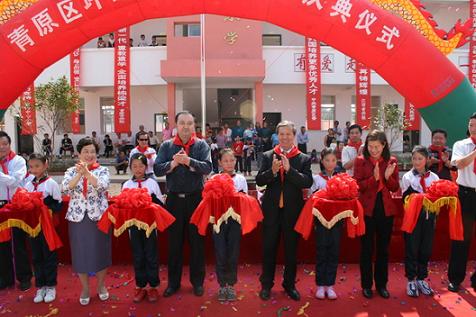 中新網11月4日電 據江西僑聯網站消息,2009年10月31日上午,江西省吉安市青原區富田鎮坪田小學鑼鼓陣陣,鞭炮長鳴,五顏六色的彩旗迎風飄揚,同學們穿上了節日的盛裝,戴上鮮艷的紅領巾,臉上露出了燦爛的笑容,雙手興高采烈地揮舞著美麗的鮮花,熱烈慶祝“加愛僑心小學”的落成。