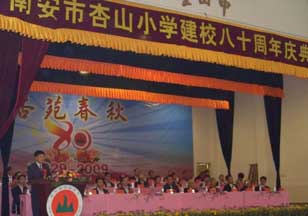 中新網11月18日電 據福建僑聯網消息,11月15日,福建省南安市金淘鎮杏山小學隆重舉行建校80周年慶典活動。福建省僑聯副主席兼秘書長林澤春,泉州市僑聯主席陳小剛等以及海內外嘉賓、校友、學校師生等共600多人參加了慶典活動。