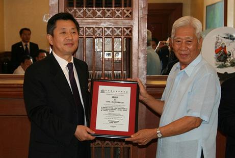 中新網(wǎng)11月25日電 據(jù)山東省僑辦消息, 11月23日,山東省僑務(wù)訪問團(tuán)拜訪了中國(guó)駐菲律賓宿務(wù)領(lǐng)事館,與總領(lǐng)事何時(shí)敬舉行了座談,并向領(lǐng)事館贈(zèng)送了紀(jì)念品。隨后訪問團(tuán)前去拜會(huì)了宿務(wù)菲華商會(huì),該會(huì)理事長(zhǎng)林倫超及各位理事熱情接待了訪問團(tuán)一行。