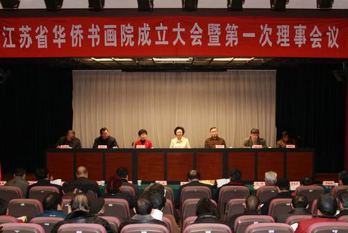 中新網(wǎng)12月2日電 據(jù)江蘇省僑聯(lián)消息,11月29日,江蘇省華僑書畫院成立大會暨第一次理事會議在南京文化藝術(shù)交流中心隆重召開。省人大常委會副主任、省總工會主席張艷,省政協(xié)副主席、致公黨江蘇省委主委黃因慧出席會議并為江蘇省華僑書畫院揭牌。省僑聯(lián)主席郁美蘭、副主席史宇與省華僑書畫院海內(nèi)外理事50余人參加了會議。